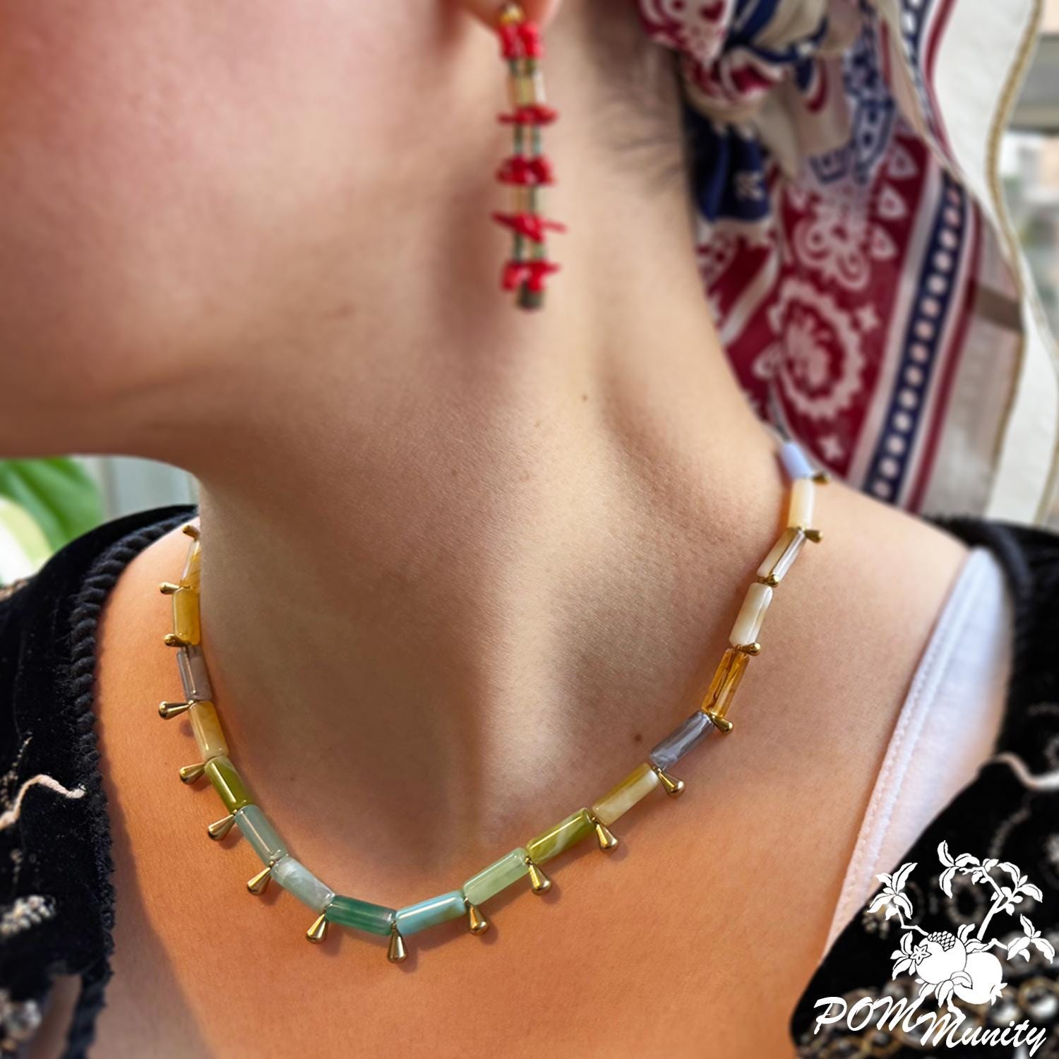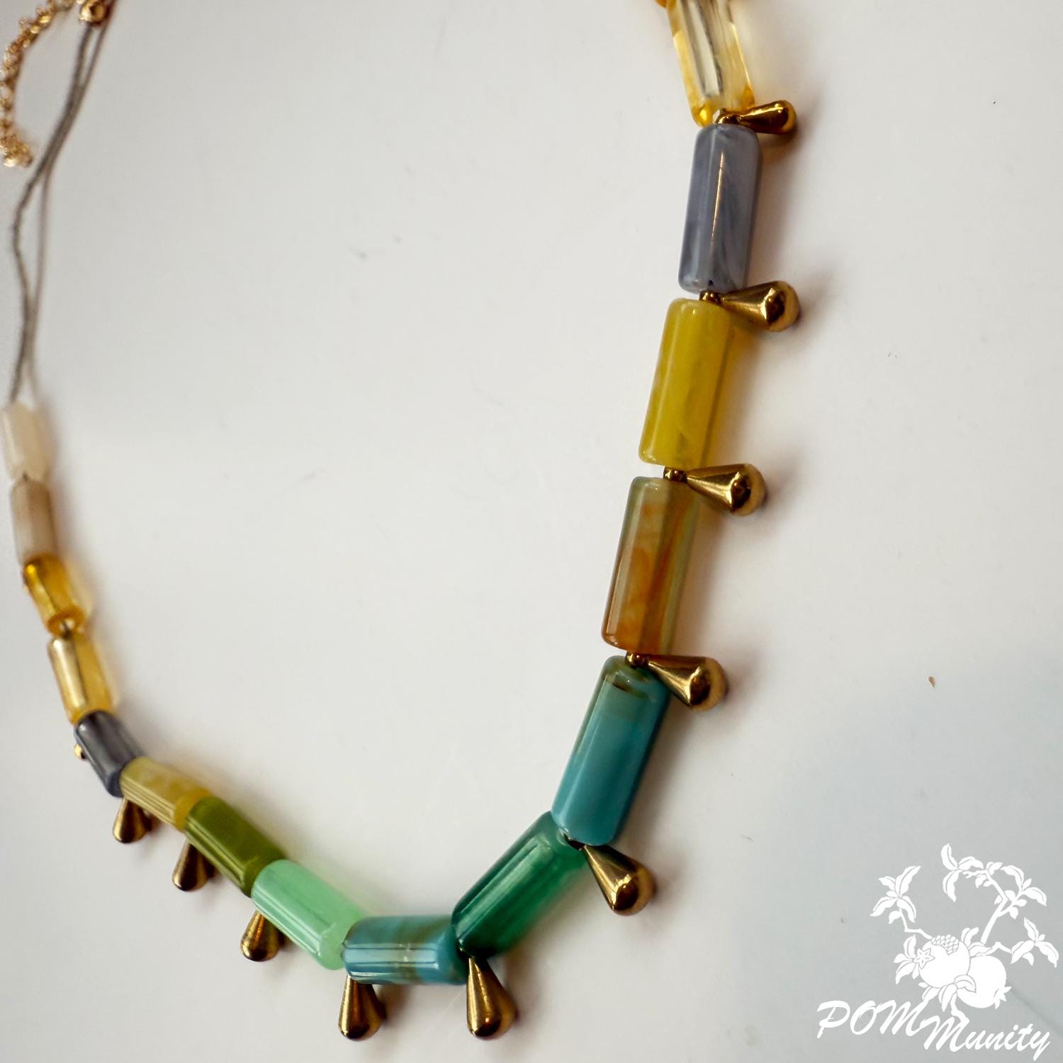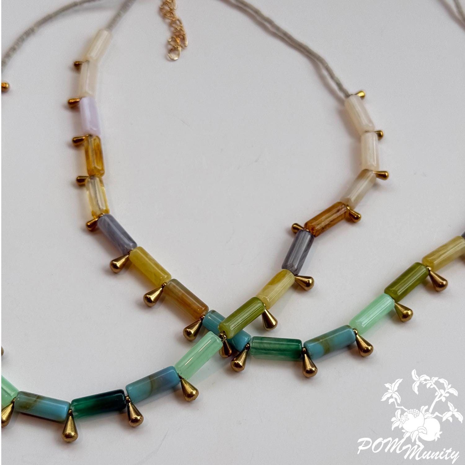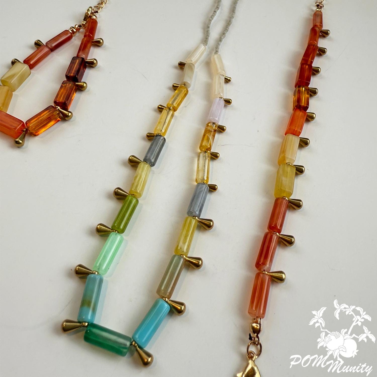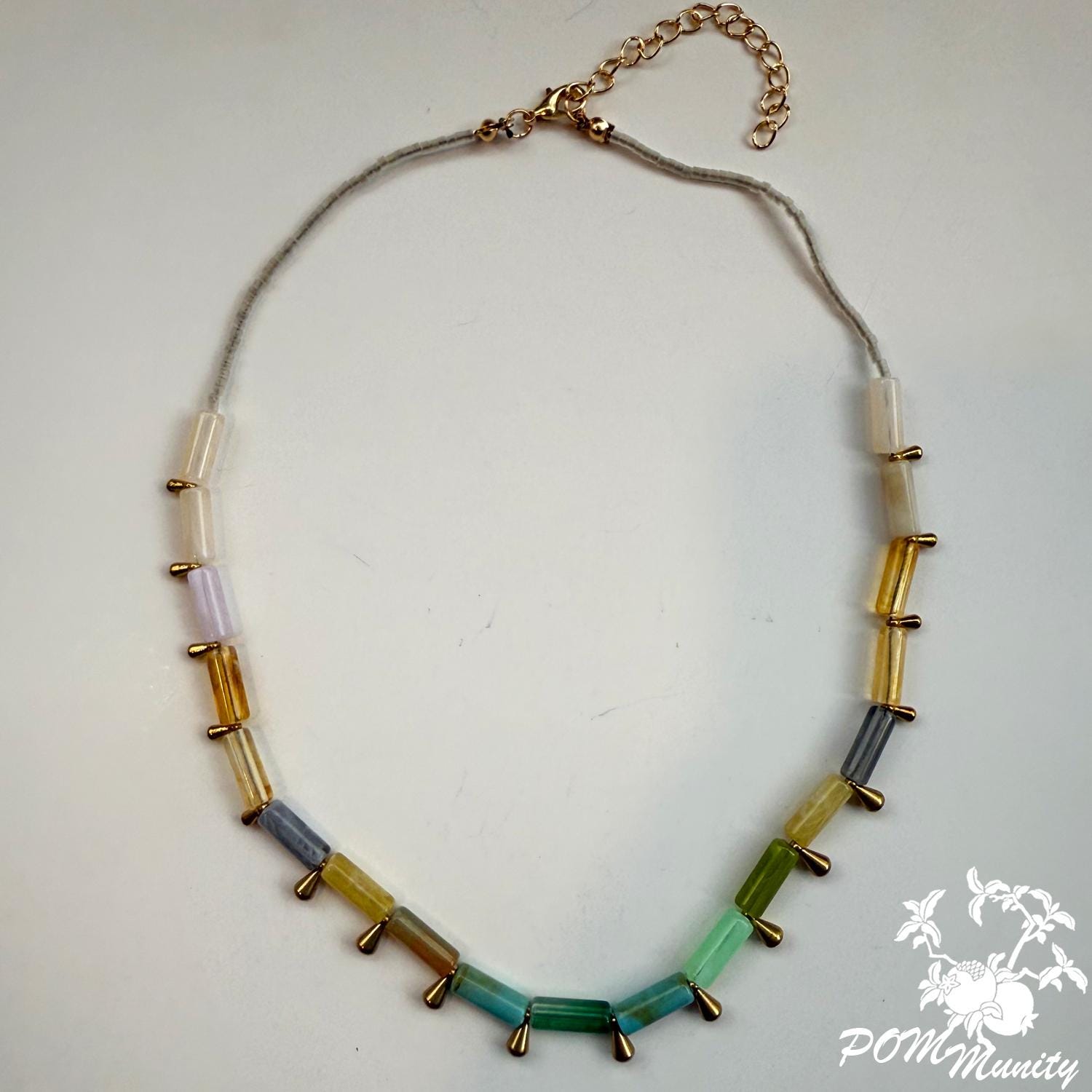 This handmade necklace is a soft, colorful pastel piece designed to brighten any outfit with its delicate charm and modern simplicity. Featuring acrylic pastel rectangular beads paired with nickel-free brass teardrop charms, frosted white microfiber glass beads, and stainless-steel findings, this necklace blends gentle tones with a clean, contemporary silhouette. The rainbow-pastel gradient transitions beautifully from soft ivory and lilac to mint, sea-green, and warm yellows, perfect for someone who loves minimalist jewelry with a playful twist. Lightweight, comfortable, and adjustable, it works beautifully for both everyday wear and special occasions.